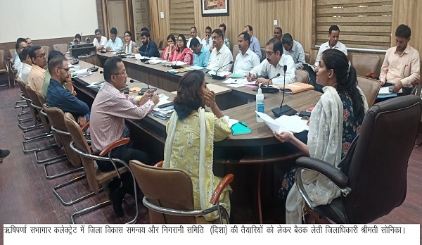 देहरादून : जिलाधिकारी सोनिका की अध्यक्षता में ऋषिपर्णा सभागार कलेक्ट्रेट में जिला विकास समन्वय और निगरानी समिति (दिशा) की तैयारियों को लेकर बैठक आयेाजित की गई। बैठक में जिलाधिकारी ने सम्बन्धित विभागों एवं कार्यदायी संस्थाओं के अधिकारियों को निर्देशित किया कि दिशा समिति की पूर्व में आयोजित बैठक में दिए गए निर्देशों के परिपालन एवं विभाग में संचालित विभिन्न निर्माण कार्यों की अद्यतन स्थिति की जानकारी उपलब्ध कराने के निर्देश दिए। उन्होंने एनएच, एनएचआई, लोनिवि, पीएमजीएसवाई, सिंचाई, जल संस्थान, पेयजल निगम, नगर निगम आदि विभागों के अधिकारियों को निर्देशित किया कि उनके विभाग द्वारा संचालित निर्माण कार्यों की अद्यतन स्थिति से अवगत कराने के निर्देश दिए। तथा आयोजित होने वाली दिशा समिति की बैठक में पूर्ण जानकारी एवं विवरण के साथ उपस्थित रहे।