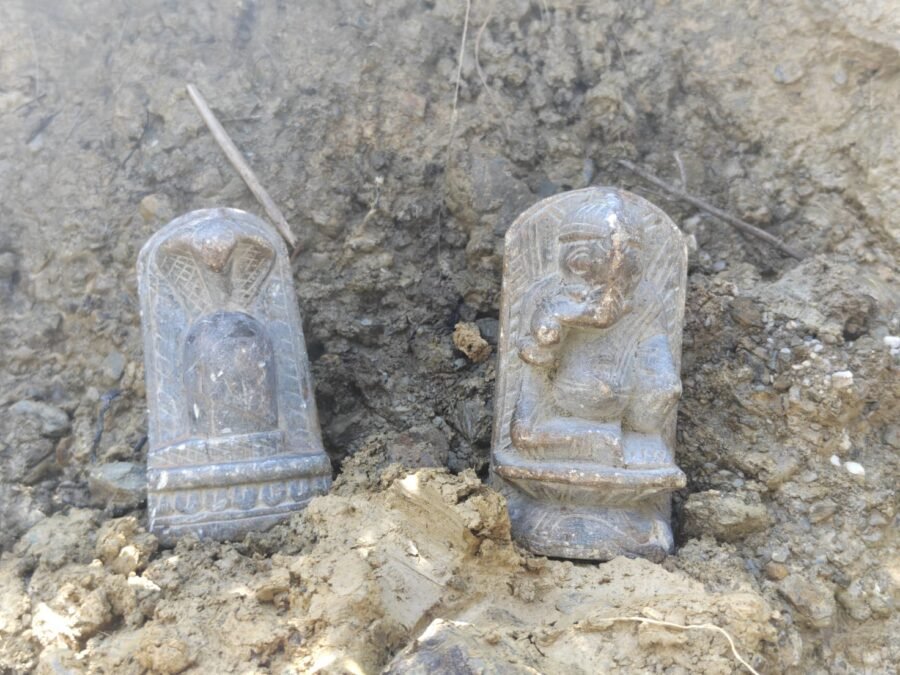किमोली-चिलोली में खुदाई के दौरान मिली प्राचीन गणेश प्रतिमा और नाग अलंकृत शिवलिंग