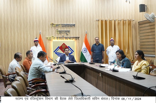 देहरादून : जिलाधिकारी सविन बंसल ने ऋषिपर्णा सभागार में स्टाम्प एवं रजिस्ट्रेशन विभाग की समीक्षा बैठक लेते हुए एआईजी स्टाम्प एंव सब रजिस्ट्रार सहित राजस्व विभाग के अधिकारियों को भूमि फर्जीवाड़ा रोकने हेतु प्रभावी कार्य योजना बनाने तथा जनमानस को फर्जीवाड़े से बचाने के लिए जागरूक करने हेतु व्यवस्था बनाने के आवश्यक दिशा निर्देश दिए। राज्य का प्रथम डेडिकेटेड कम्प्यूटर कियोस्क की शुरूआत जनपद देहरादून से जिलाधिकारी एक और अभिनव प्रयास।