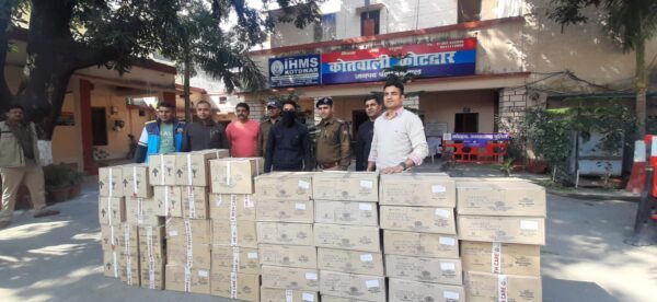 कोटद्वार : वरिष्ठ पुलिस अधीक्षक श्वेता चौबे द्वारा जनपद में अपराधों की रोकथाम, बढ़ते नशे की प्रवृत्ति पर अंकुश लगाने, अवैध मादक पदार्थों की खरीद फरोख्त करने वालों के विरूद्ध प्रभावी चैकिंग अभियान चलाकर कड़ी कार्यवाही करने हेतु समस्त थाना प्रभारियों को आदेशित किया गया है। जिसके क्रम में अपर पुलिस अधीक्षक कोटद्वार शेखर चन्द्र सुयाल के निर्देशन, क्षेत्राधिकारी कोटद्वार गणेश लाल कोहली, क्षेत्राधिकारी ऑपरेशन विभव सैनी के पर्यवेक्षण, प्रभारी निरीक्षक मनीभूषण श्रीवास्तव एवं निरीक्षक मो. अकरम के नेतृत्व में आज 08 फरवरी 2023 को कोतवाली कोटद्वार पुलिस व सीआईयू टीम द्वारा दौराने चैकिंग मटिलायी काण्डाखाल के पास से अभियुक्त अविनाश कण्डवाल को वाहन संख्या UK12 CB-0368 पिकअप में कुल 45 पेटी अवैध अंग्रेजी शराब का परिवहन करते हुये गिरफ्तार किया गया। जिस सम्बन्ध में अभियुक्त के विरूद्ध कोतवाली कोटद्वार पर सुसंगत धाराओं में नियमानुसार अभियोग पंजीकृत किया गया। अभियुक्त को न्यायालय के समक्ष पेश कर आवश्यक वैधानिक कार्यवाही की जा रही है।