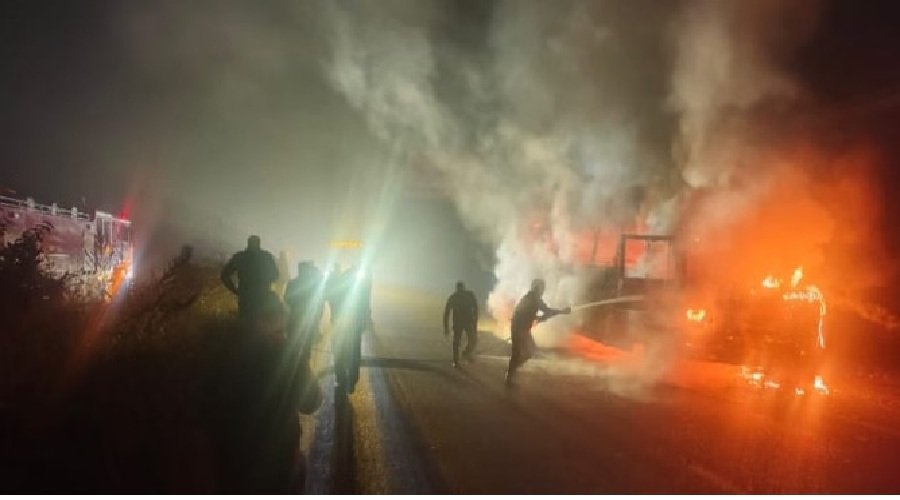देहरादून: नए साल के पहले ही दिन उत्तराखंड के डोईवाला क्षेत्र में बड़ा हादसा टल गया। लोहाघाट से देहरादून आ रही एक बस में अचानक आग लग गई। इस दौरान चीख पुकार मच गई। गनीमत रही कि सभी सवारियां सुरक्षित हैं।से देहरादून आ रही उत्तराखंड रोडवेज की एक यात्री बस में सुबह अचानक आग लग गई। बस पूरी तरह जलकर राख हो गई, लेकिन ड्राइवर की सूझबूझ से सभी यात्रियों की जान बच गई।