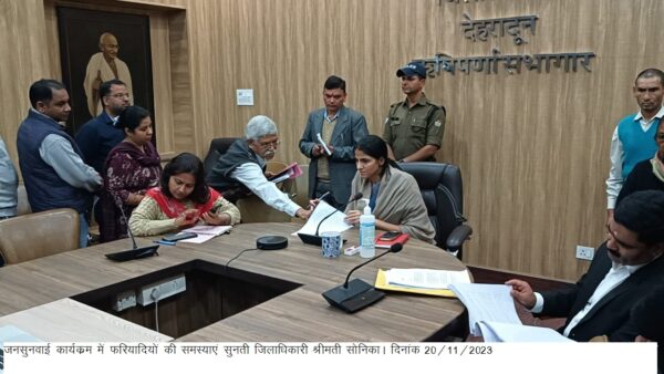 देहरादून : जिलाधिकारी सोनिका की अध्यक्षता में ऋषिपर्णा सभागार कलेक्ट्रेट में जनसुनवाई कार्यक्रम का आयोजन किया गया। जनसुनवाई में आज 73 शिकायतें प्राप्त हुई। अधिकतर शिकायतें भूमि से सम्बन्धित प्राप्त हुई, इसके अतिरिक्त वरिष्ठ नागरिकों, समाज कल्याण से सम्बन्धित पेंशन, स्ट्रीटलाईट लगवाने, विद्युत कनैक्शन, आपदा के कार्यों में गड़बड़ी, आपसी विवाद आदि शिकायतें प्राप्त हुई। जिलाधिकारी ने समस्त विभागीय अधिकारियों को निर्देश दिए कि वरिष्ठ नागरिकों की शिकायतों को प्राथमिकता के आधार पर निस्तारित करवाना सुनिश्चित करें तथा जिन शिकायतों की जांच में समय लग रहा है से भी शिकायतकर्ताओं को सूचित कर दिया जाए, ताकि जनमानस को अनावश्यक न भटकना पड़े।