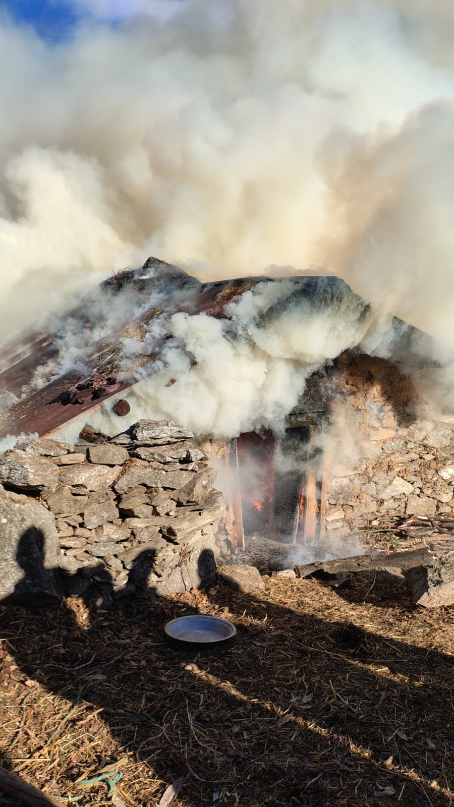 उत्तरकाशी: उत्तराखंड के उत्तरकाशी जिले की भटवाड़ी तहसील के अंतर्गत ग्राम सिल्ला में आज सुबह एक दर्दनाक अग्निकांड हुआ है। शैलेन्द्र पुत्र मंगल सिंह की छानी (गौशाला) में प्रातः करीब 8:40 बजे आग लग गई, जिससे 6 पशुओं की जिंदा जलकर मौत हो गई। अग्निकांड में 1 भैंस, 3 बैल, 1 गाय और 1 गाय का बछड़ा कुल 6 पशु आग की चपेट में आकर मर गए। साथ ही पूरी गौशाला क्षतिग्रस्त हो गई। हालांकि, इस हादसे में किसी व्यक्ति की जान नहीं गई और कोई जनहानि नहीं हुई है। घटना की सूचना मिलते ही राजस्व उप-निरीक्षक और पशु चिकित्सा विभाग की टीम तुरंत मौके पर पहुंची और स्थिति का जायजा लिया। प्रशासन ने प्रभावित परिवार को तत्काल राहत पहुंचाने और आगे की जांच शुरू करने का आश्वासन दिया है।