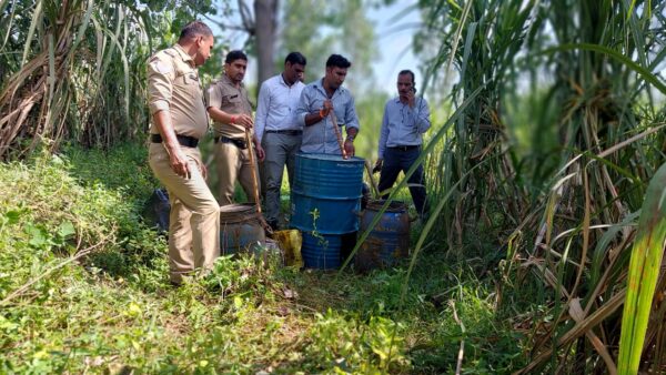 उपायुक्त प्रभाशंकर मिश्रा के निर्देश पर आबकारी विभाग ने की बड़ी कार्रवाई, नाथू खेड़ी के जंगल में 200 किलोग्राम लहन नष्ट कर 22 लीटर कच्ची शराब की बरामद