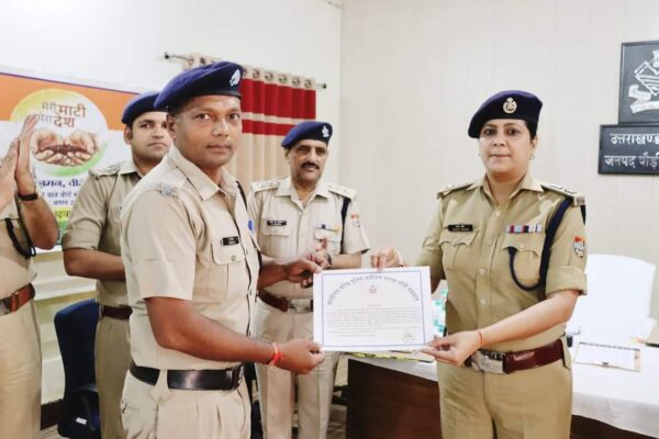 इस दौरान महिला उपनिरीक्षक संध्या नेगी, मुख्य आरक्षी दलीप सिंह कोतवाली पौड़ी, अपर उपनिरीक्षक कृपाल सिंह थाना रिखणीखाल, मुख्य आरक्षी सुशील कुमार थाना रिखणीखाल, मुख्य आरक्षी हेमन्त कुमार, दीपक कुमार, आरक्षी चन्द्रपाल थाना कोटद्वार, मुख्य आऱक्षी संतोष कुमार सीआईयू, आरक्षी आशीष बिष्ट सीआईयू, मुख्य आरक्षी विमला नेगी साईबर सैल कोटद्वार, आरक्षी सतीश वर्मा थाना कोटद्वार, फायर सर्विस चालक नरेन्द्र कुमार, फायर स्टेशन पौड़ी, अपर उपनिरीक्षक नीतू असवाल पुलिस संचार शाखा पौड़ी, मुख्य आरक्षी रामपाल सिंह थाना लक्ष्मणझूला को माह आगस्त में अच्छा कार्य करने पर वरिष्ठ पुलिस अधीक्षक द्वारा प्रशस्ति पत्र देकर सम्मानित किया गया।
