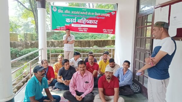 कोटद्वार। दैनिक संविदा आउटसोर्स कर्मचारी संघ वन विभाग उत्तराखण्ड के उपनल, आउटसोर्स कर्मचारियों का कार्यबहिष्कार कोटद्वार स्थित स्वागती केन्द्र में 25वें दिन भी सुचारू रूप से गतिमान रहा। प्रदेश अध्यक्ष चन्द्र प्रकाश ने बताया कि राज्य कर्मचारी संयुक्त परिषद के प्रदेश उपाध्याक्ष राकेश तिवाड़ी ने कार्यबहिष्कार स्थल स्वागती केन्द्र कोटद्वार में पहुंच कर उपनल कर्मचारियों का मनोबल बढाया व मंच से सम्बोधित करते हुए कहा कि राज्य कर्मचारी संयुक्त परिषद सदैव आपके साथ है । कहा कि वन भवन देहरादून कूच करने पर वह नेतृत्व भी करेगें। प्रदेश संरक्षक देवेन्द्र सिंह ने बताया कि कई अन्य संघों ने भी इस आन्दोलन के लिए अपना समर्थन दिया है। शीघ्र ही वन भवन देहरादून कूच किया जायेगा। कार्यबहिष्कार में राज्य कर्मचारी के प्रदेश उपाध्याक्ष राकेश तिवाडी, प्रदेश संरक्षक देवेन्द्र सिंह, शाखा अध्यक्ष राम सिंह खाती, कोषाध्यक्ष प्रदीप जुयाल, शाखा मंत्री राजीव शर्मा, प्रिया, कुसुम, सुनील कुमार, विकास नेगी, हेमा, अरम चन्द्र, नरेश जुयाल, रविन्द्र बिष्ट, विपिन, बिजेन्द्र गुसांई, जीत सिंह, प्रमोद, मोहनचन्द्र, दीपक चौधरी, पवन, नीरज रावत आदि मोजूद रहें।