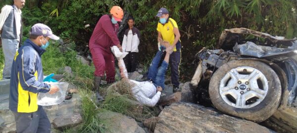 टिहरी : जनपद टिहरी के नैनबाग क्षेत्र मरोड़ बैंड के पास एक वाहन हुआ खाई में दुर्घटनाग्रस्त, SDRF ने किये शव बरामद। कल 25 सितम्बर 2023 को पुलिस चौकी नैनबाग द्वारा एसडीआरएफ टीम को सूचित किया गया कि नैनबाग क्षेत्र मरोड़ बैंड के पास एक वाहन अनियंत्रित होकर लगभग 600 मीटर गहरी खाई में दुर्घटनाग्रस्त हो गया है। उक्त सूचना प्राप्त SDRF टीम मुख्य आरक्षी प्रदीप पंवार के हमराह मय आवश्यक रेस्क्यू उपकरणों के तत्काल घटनास्थल के लिए रवाना हुई। SDRF टीम को घटनास्थल पर पहुँचकर ज्ञात हुआ कि उक्त वाहन में 02 लोग सवार थे जिनकी घटनास्थल पर ही मृत्यु हो गयी थी। अत्यधिक रात्रि व दुर्गम मार्ग होने के कारण रात्रि में शवों को निकालना संभव नही हो पाया। आज पुनः SDRF टीम द्वारा घटनास्थल पर पहुँचकर त्वरित कार्यवाही करते हुऐ रोप द्वारा खाई में उतरकर उक्त वाहन तक पहुँच बनायी व दोनों शवो को रोप व स्ट्रेचर के माध्यम से खाई से बाहर निकालकर जिला पुलिस के सुपुर्द किया गया। गौरतलब है कि उक्त वाहन किआ सोनेट (UK 08 AY 1973) बड़कोट से देहरादून की ओर आ रहा था व मरोड़ बैंड के पास अचानक वाहन अनियंत्रित होकर खाई में दुर्घटनाग्रस्त हो गया।