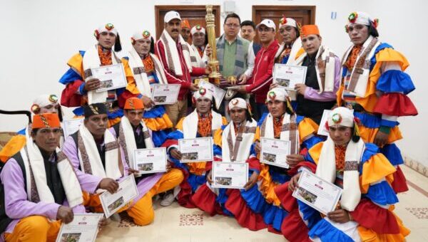 देहरादून : मुख्यमंत्री पुष्कर सिंह धामी से बुधवार को मुख्यमंत्री आवास स्थित मुख्यमंत्री कैम्प कार्यालय में गणतंत्र दिवस पर विभिन्न राज्यों की झांकियों में उत्तराखण्ड की “मानसखण्ड” झांकी को प्रथम स्थान प्राप्त करने के बाद महानिदेशक सूचना बंशीधर तिवारी ने ट्रॉफी के साथ भेंट की। इस अवसर पर झांकी के टीम लीडर संयुक्त निदेशक सूचना के.एस.चौहान के साथ झांकी के कलाकार उपस्थित थे। मुख्यमंत्री ने उत्तराखण्ड को मानसखण्ड झांकी के लिये प्रथम पुरस्कार मिलने पर प्रदेश के लिये सम्मान की बात बतायी। उन्होंने झांकी में शामिल प्रत्येक कलाकार को 50-50 हजार की धनराशि देने की घोषणा की। मुख्यमंत्री पुष्कर सिंह धामी ने कहा कि गणतंत्र दिवस के अवसर पर उत्तराखण्ड की झांकी को प्रथम स्थान प्राप्त होने से राज्य की समृद्ध लोक संस्कृति एवं धार्मिक विरासत को देश व दुनिया में पहचान मिली है। मुख्यमंत्री पुष्कर सिंह धामी के मार्गदर्शन के उपरान्त मानसखण्ड पर आधारित झांकी प्रस्तावित की गई थी। श्री केदारनाथ व श्री बदरीनाथ की तर्ज पर कुमाऊ के पौराणिक मंदिरों के लिए मुख्यमंत्री पुष्कर सिंह धामी के निर्देश पर मानसखण्ड मंदिर माला मिशन योजना पर कार्य किया जा रहा है।