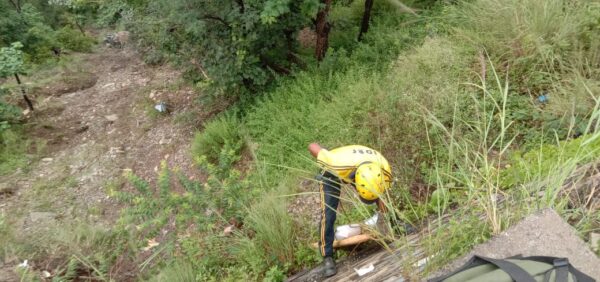 टिहरी : तोताघाटी के पास गहरी खाई में ट्रक हुआ दुर्घटनाग्रस्त, SDRF ने बरामद किया चालक का शव। आज 15 सितंबर 2023 को पुलिस चौकी बचेली खाल द्वारा SDRF को सूचना दी गयी कि तोताघाटी के पास एक ट्रक अनियंत्रित होने से लगभग 150 मीटर गहरी खाई में दुर्घटनाग्रस्त हो गया है। उक्त सूचना पर पोस्ट ब्यासी से HC महावीर रावत के हमराह SDRF रेस्क्यू टीम मय आवश्यक उपकरणों के घटनास्थल के लिए रवाना हुई। SDRF टीम द्वारा घटनास्थल पर पहुँचकर रोप की सहायता से खाई में उतरकर सर्च अभियान चलाया गया, सर्चिंग के दौरान रेस्क्यू टीम द्वारा उक्त वाहन चालक का शव बरामद कर लिया गया जिसे रोप व स्ट्रैचर की सहायता से मुख्य मार्ग तक पहुँचाकर जिला पुलिस के सुपर्द किया गया।